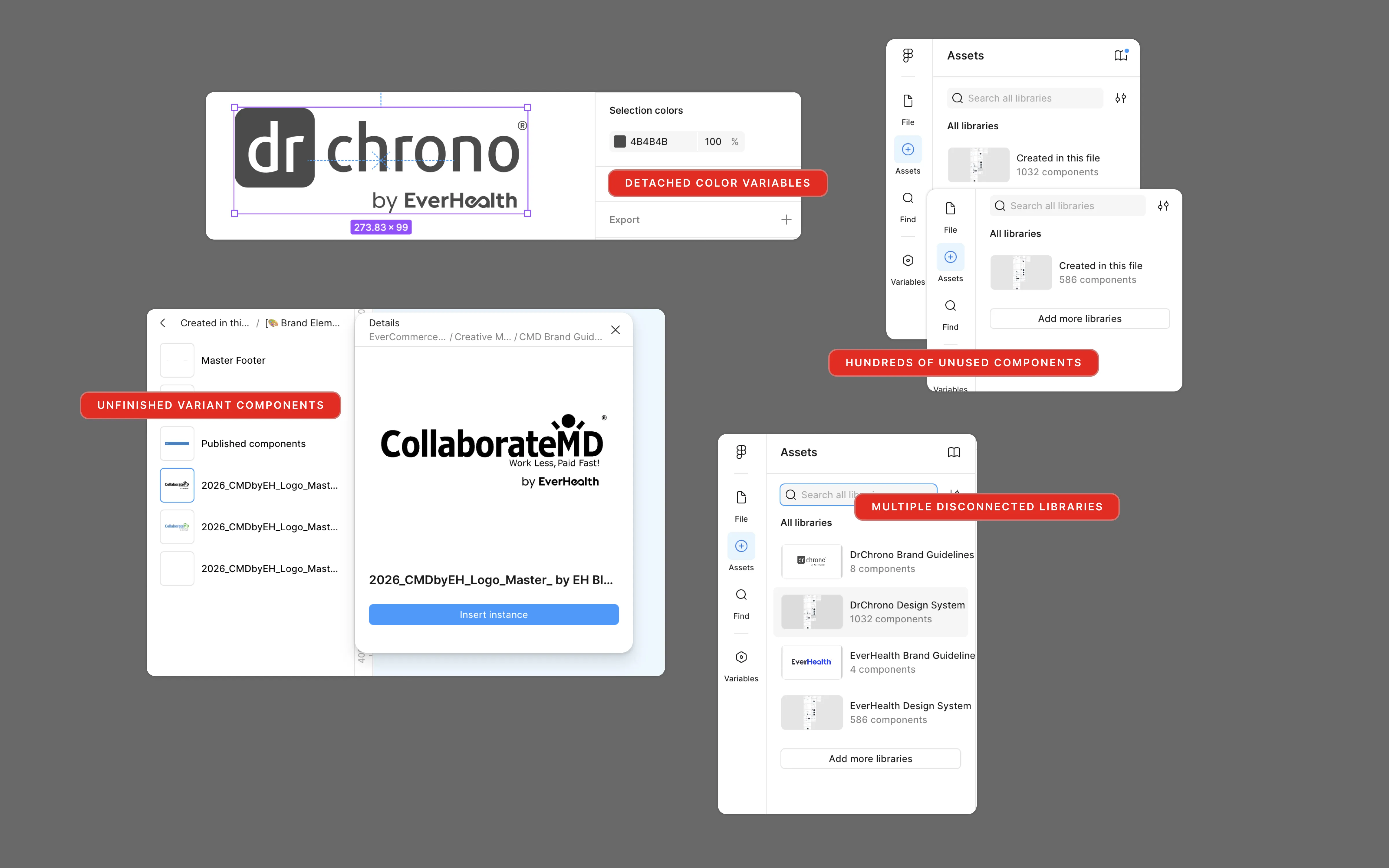 Brand assets full of errors. Wrong hex values on color tokens. Wrong fonts in styles. Logos incorrectly built into components.