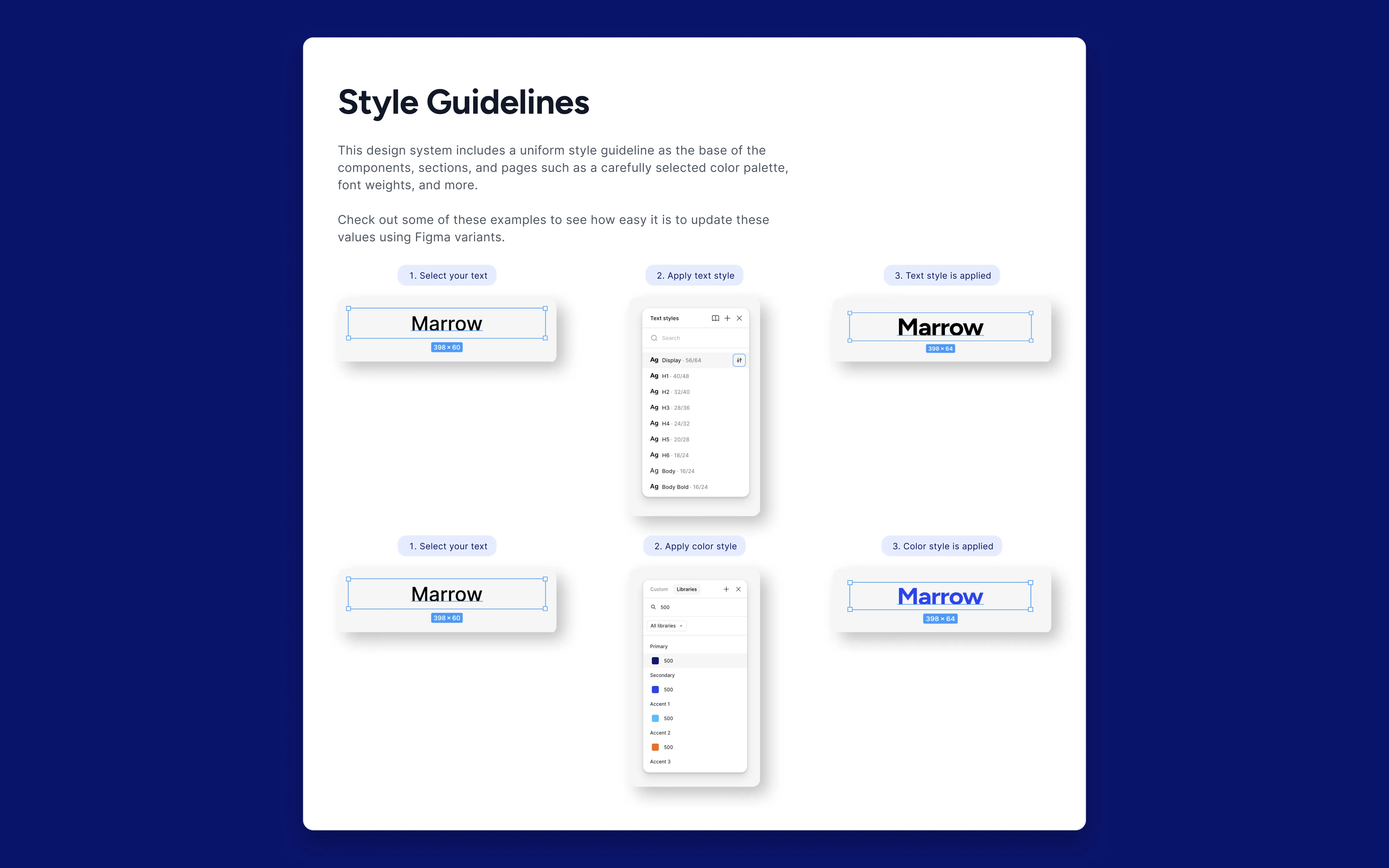 I started with leadership. Showed them the scope of the problem next to the solution. That created buy-in. Then I ran a hands-on session with the design team. After that, I documented SOPs for future onboarding. The product team keeps their own component system, but it now references Marrow's brand tokens as the visual foundation. Both teams own their domain without stepping on each other.